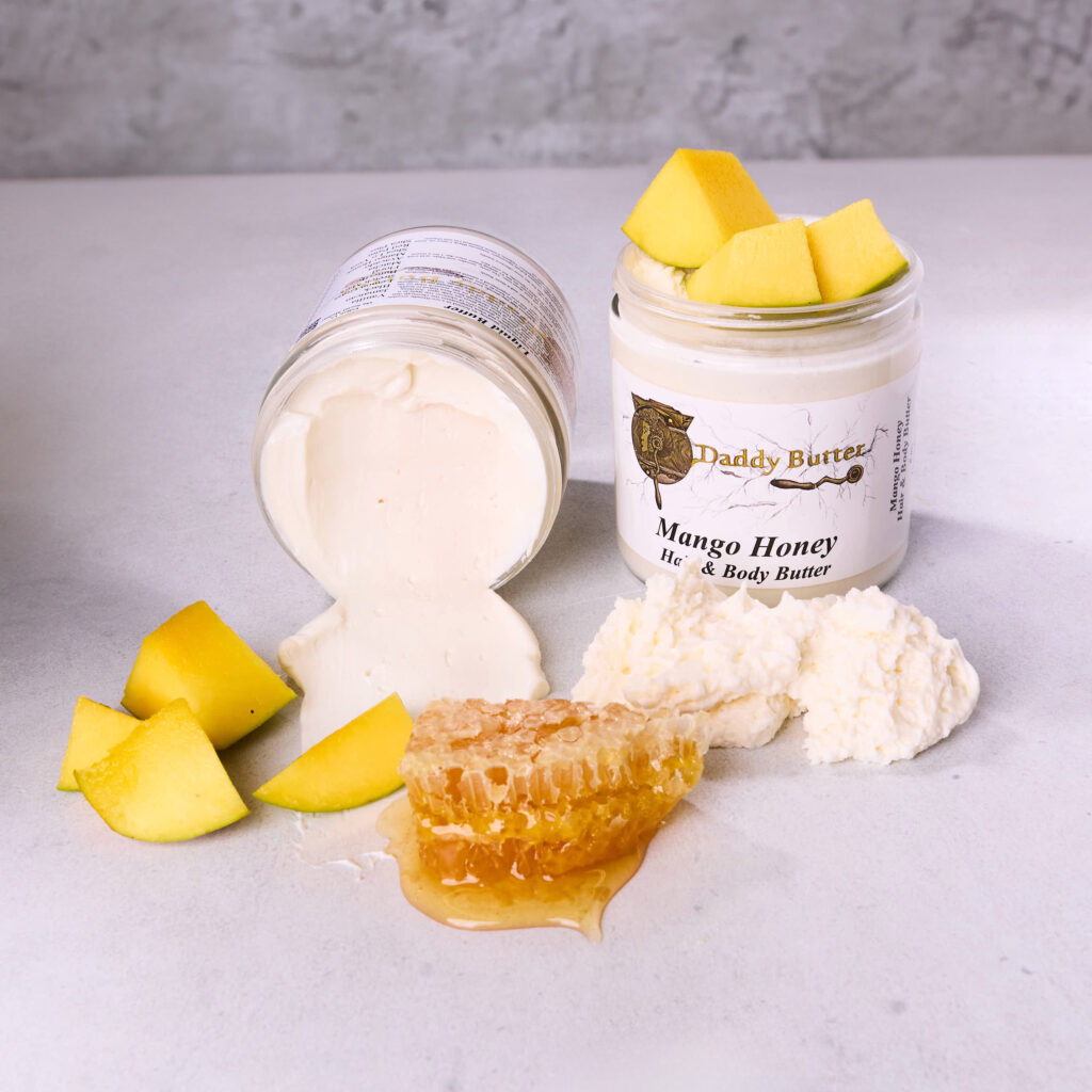 This butter is amazing for both hair and skin. Mango Hair & Body butter fortifies strands from the inside out, softens hair, reduces breakage and smooths split ends.